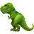 A friendly T-Rex with a big smile carefully tries to balance a small flower on one of its tiny arms.